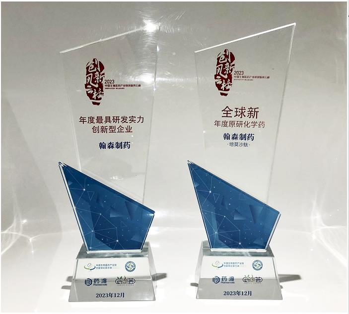 Recently, the Yangtze River Delta Biochemical Industry Conference, organized by China Biomedical Industry Chain Innovation and Transformation Alliance(CBIITA)and other institutions, was held in Hangzhou. At the conference, the 2023 China Biomedical Industry Chain Innovation Billboard was announced, in which Hansoh Pharma Pharmaceutical Group won two major prizes—“Innovative Enterprises with the Most Powerful R&D Capabilities in 2023 - Big Pharma” (second place) and “2023 New Global Independently-Developed Drug” (for pegmolesatide injection). Mr. Xu Chuanhe, the Group’s Senior Vice President, attended the conference to accept the prizes.
