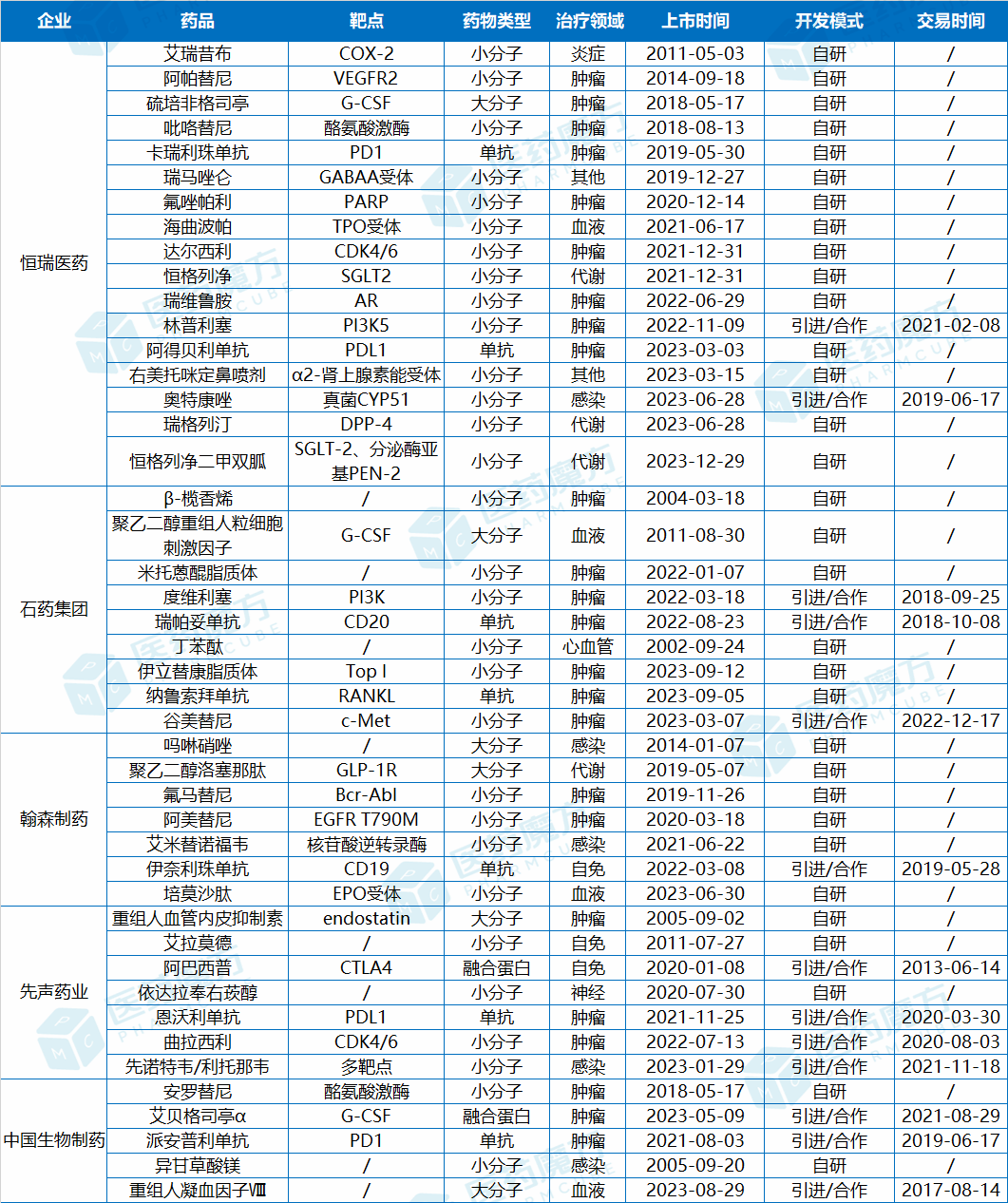 本文以恒瑞医药、翰森制药、先声药业、石药集团、中国生物制药等几家头部制药企业为代表,,,,,,,视察一下海内BigPharma立异升级的体现。。。。。。