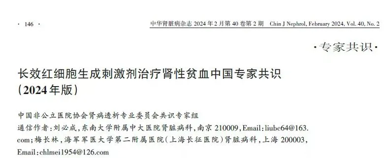 [1] 中国非公立医院协会肾病透析专业委员会共识专家组. 长效红细胞天生刺激剂治疗肾性血虚中国专家共识(2024年版)[J]. 中华肾脏病杂志,2024,40(2):146-157.